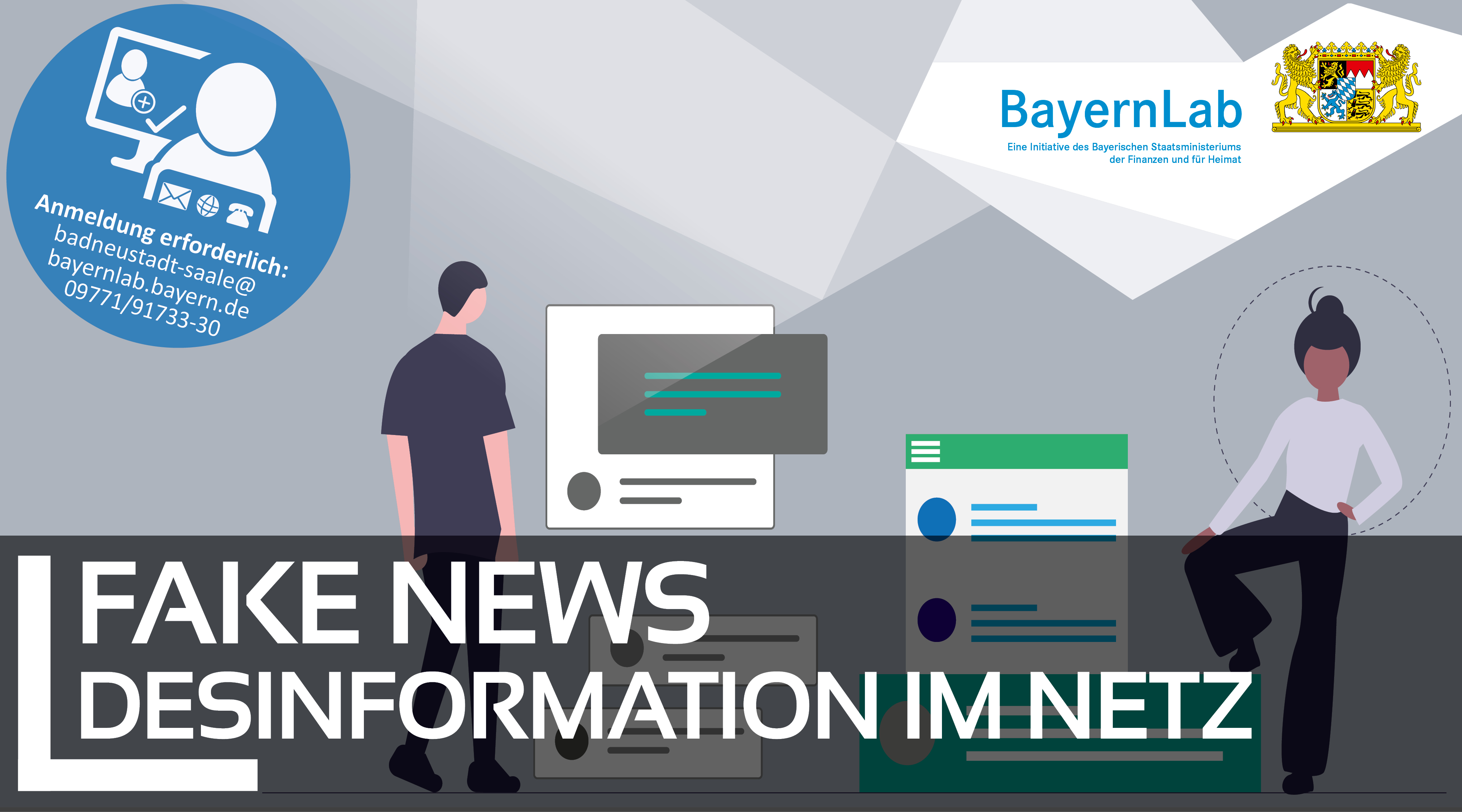 Das BayernLab Bad Neustadt lädt am Mittwoch, den 22.10.2025 von 10:00 Uhr bis 11:30 Uhr zum kostenfreien Vortrag "Fake News" ein.